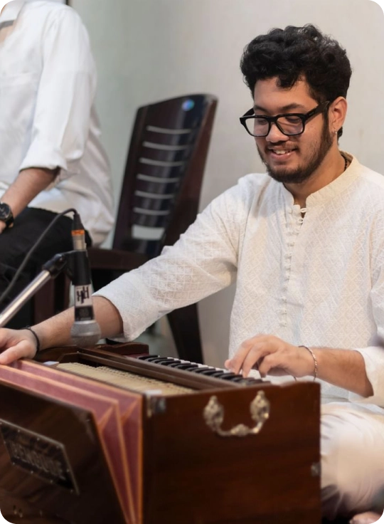 I perform as a Samvādini (harmonium) Artist